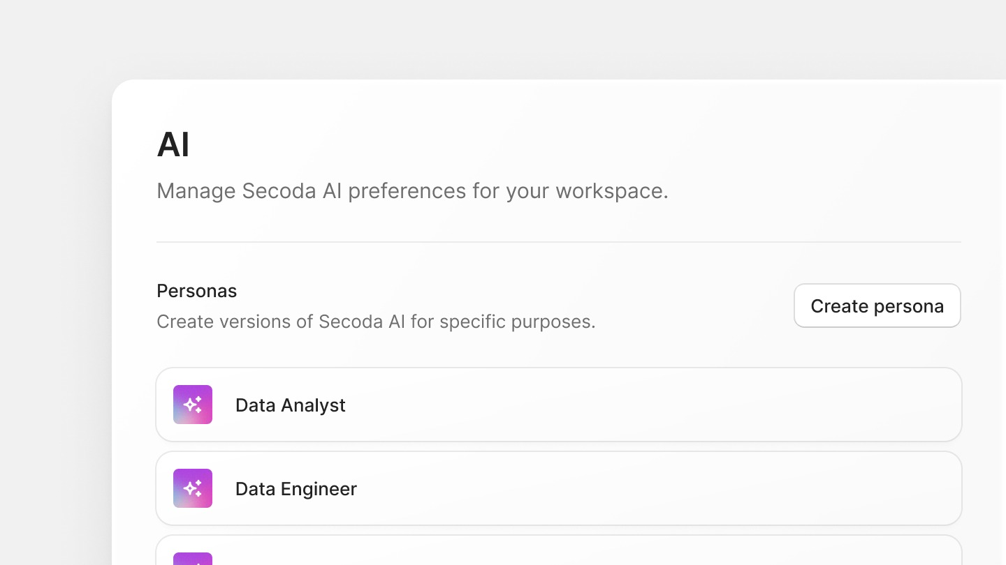🧠 Advanced memory for more personalized support Your AI assistant just got smarter. Secoda AI now remembers your preferences, past conversations, and usage patterns to tailor responses to how your team works. Learn more