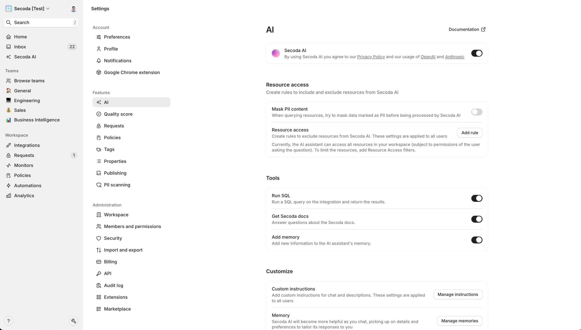 Admins can customize AI settings to align with workspace preferences and security protocols: