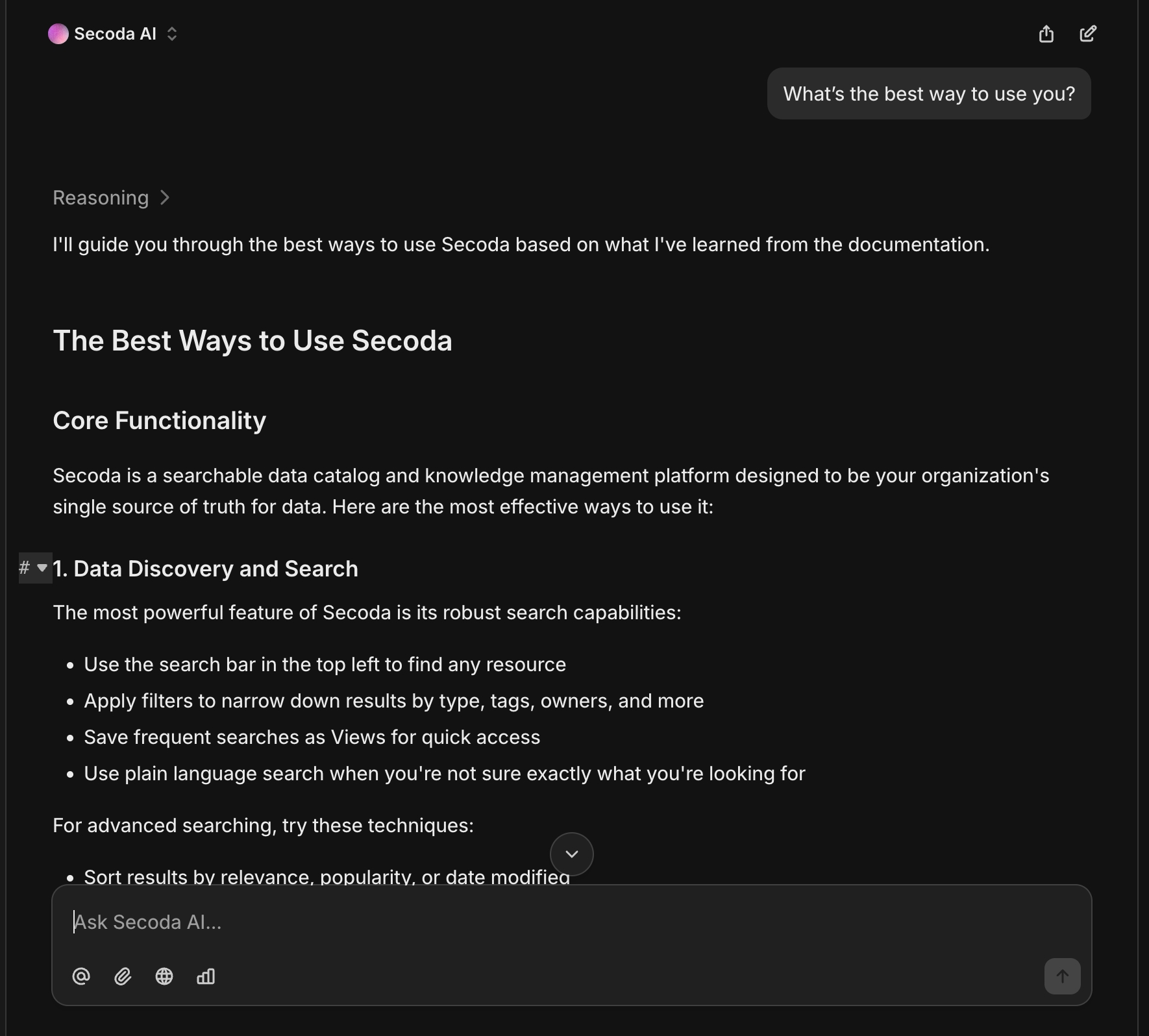 This page will review the best ways to use Secoda AI to get the most effective results.