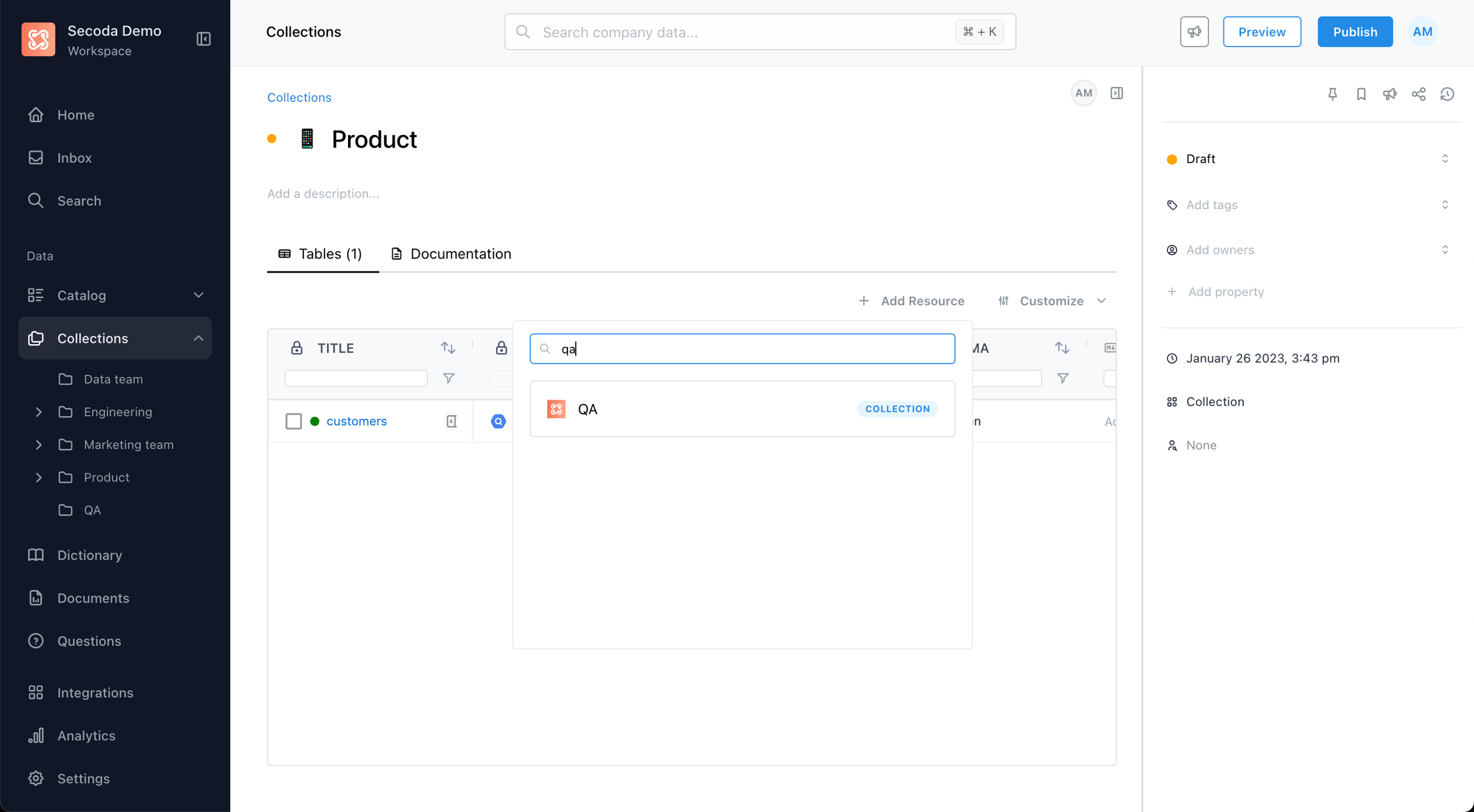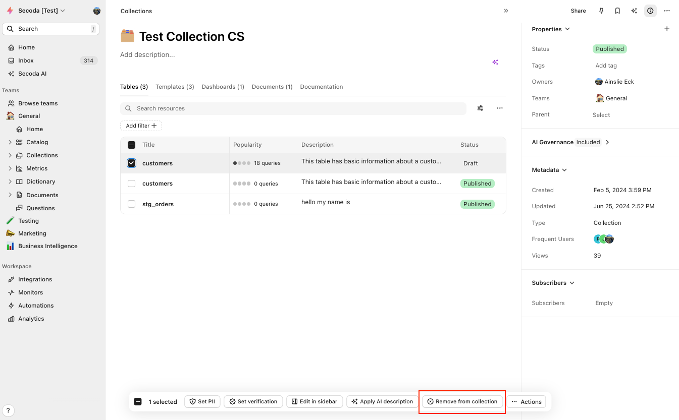 This guide demonstrates how to use collections in Secoda.