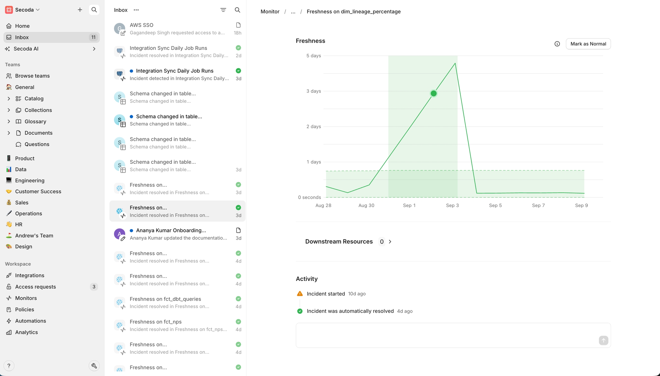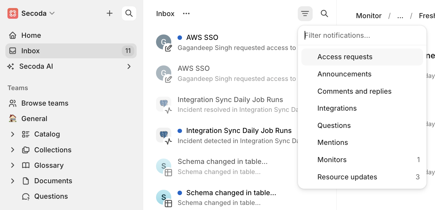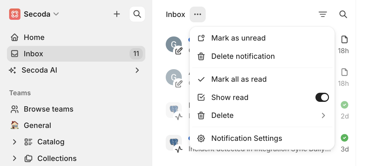 The Inbox is your notification center in Secoda and where you’ll find important updates from your workspace.