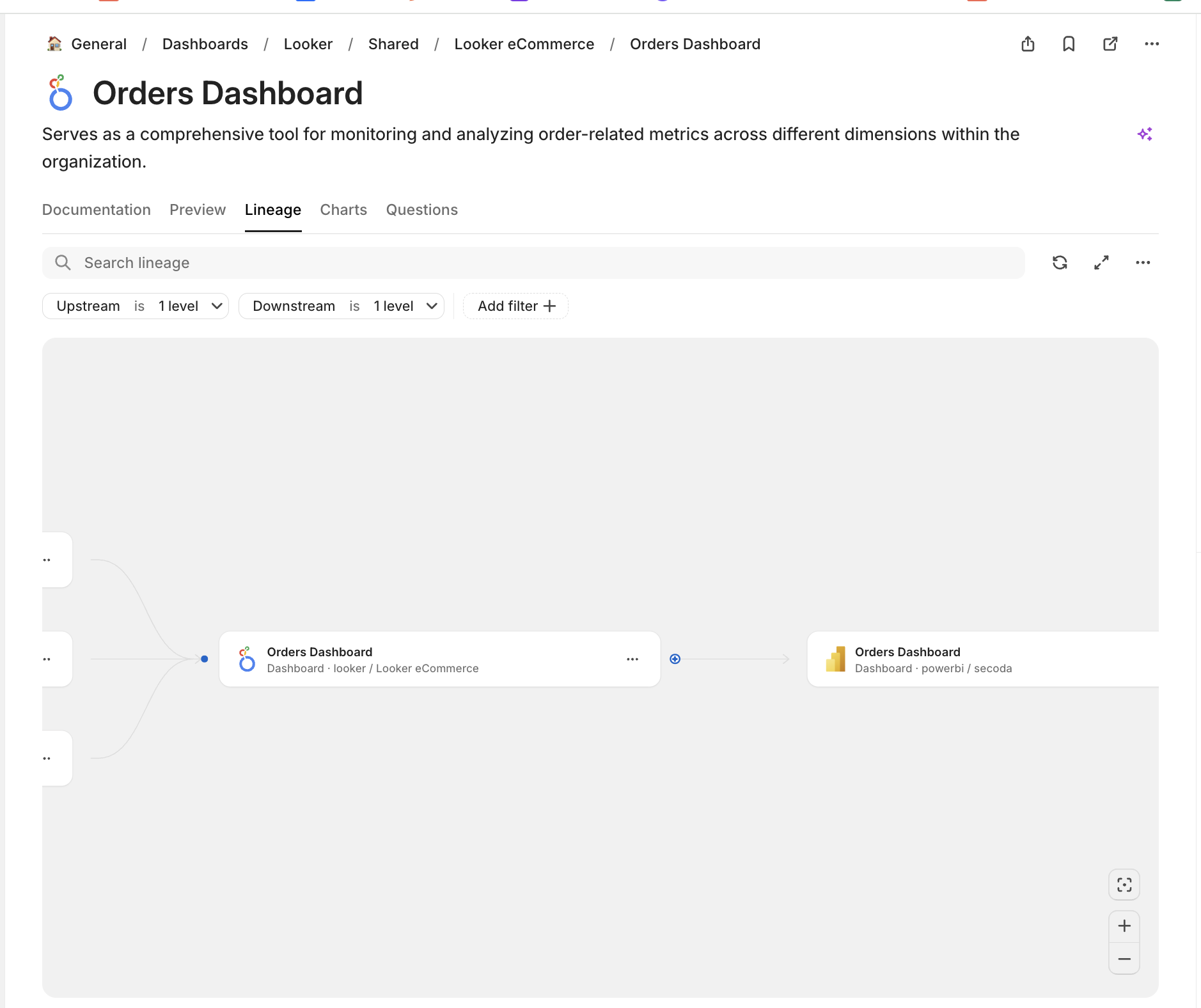 The new connection you have created is bi-directional on Catalog resources. That means, if you connect a dashboard to a column (for example), you can go to that dashboard and see the connection there as well.