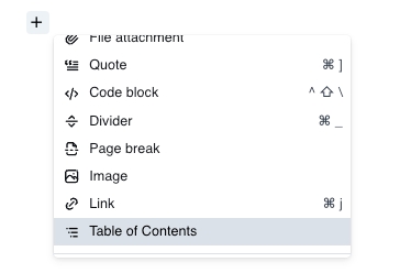 Build a Table of Contents in Documents by using the / command and either scrolling or typing "Table of Contents" to insert it.