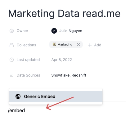 Types of embeds in Secoda: