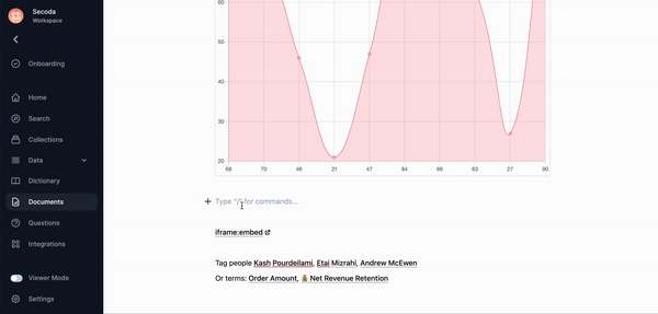 Here's a walkthrough of how to embed and what sources Secoda allows you to embed from.