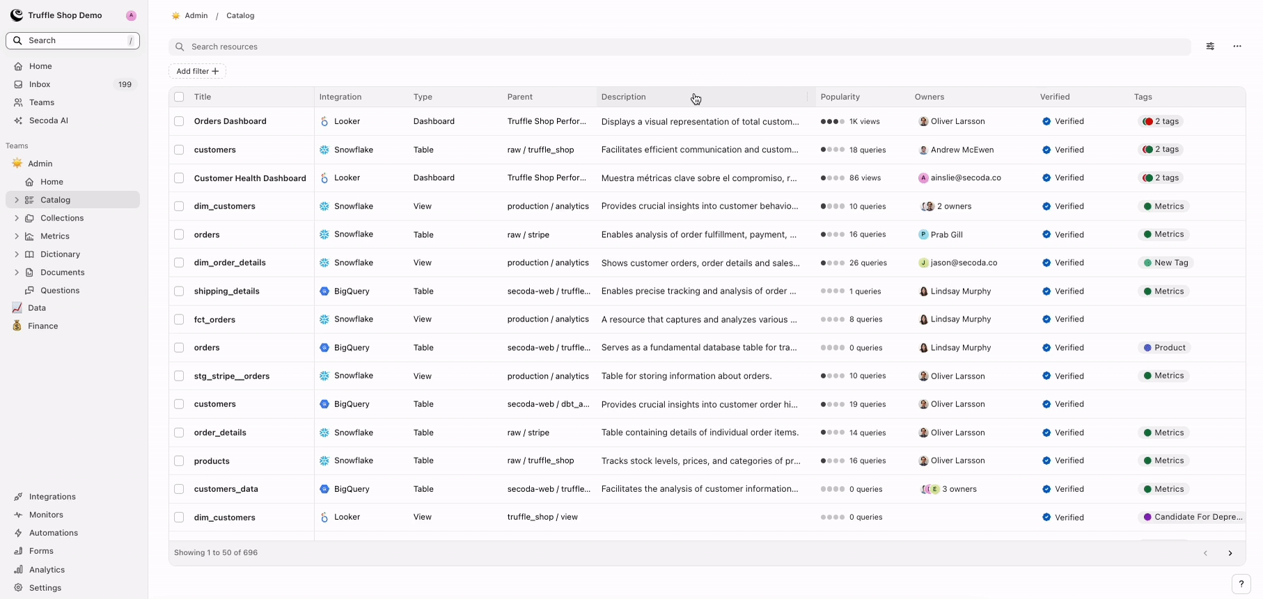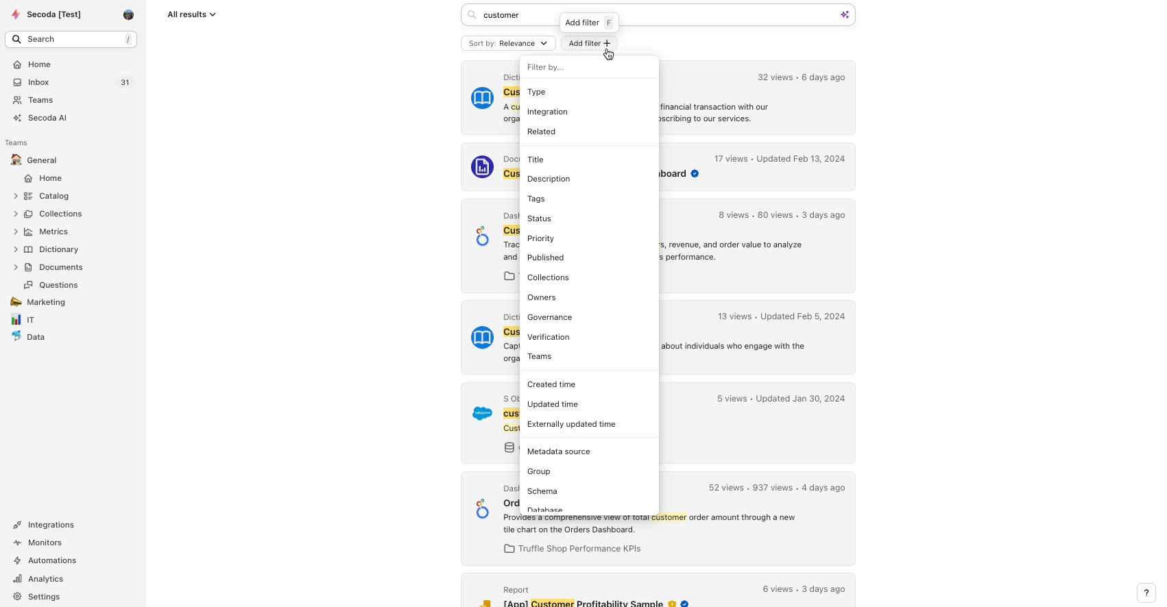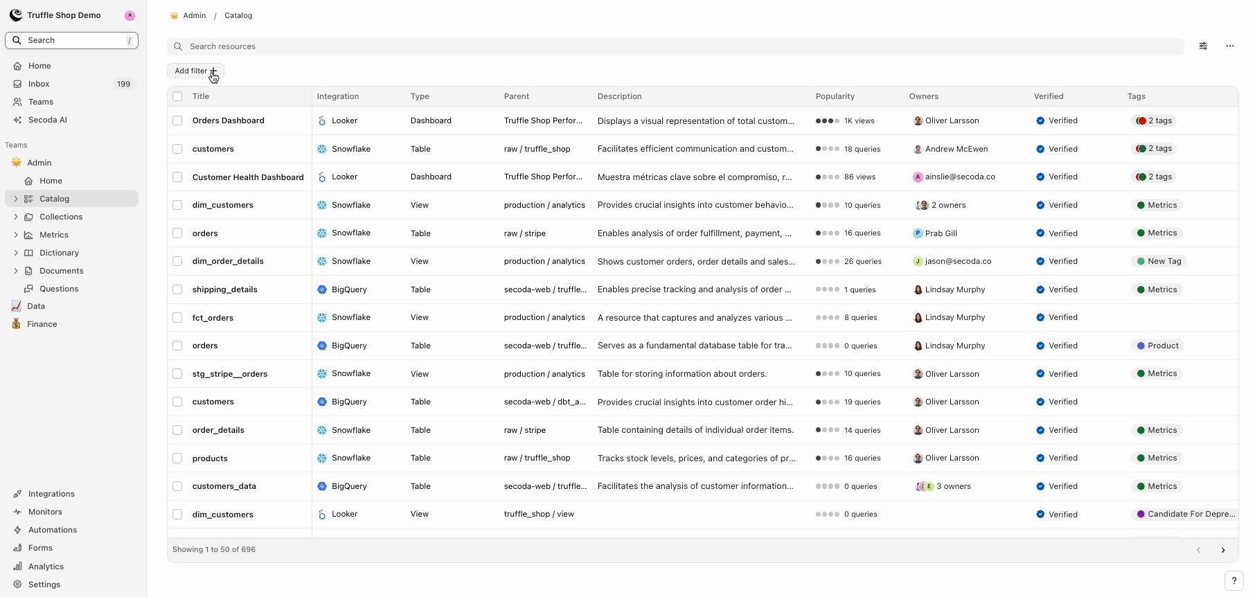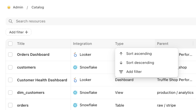 Streamline your data discovery by applying tailored filters to efficiently navigate and manage resources in Secoda.