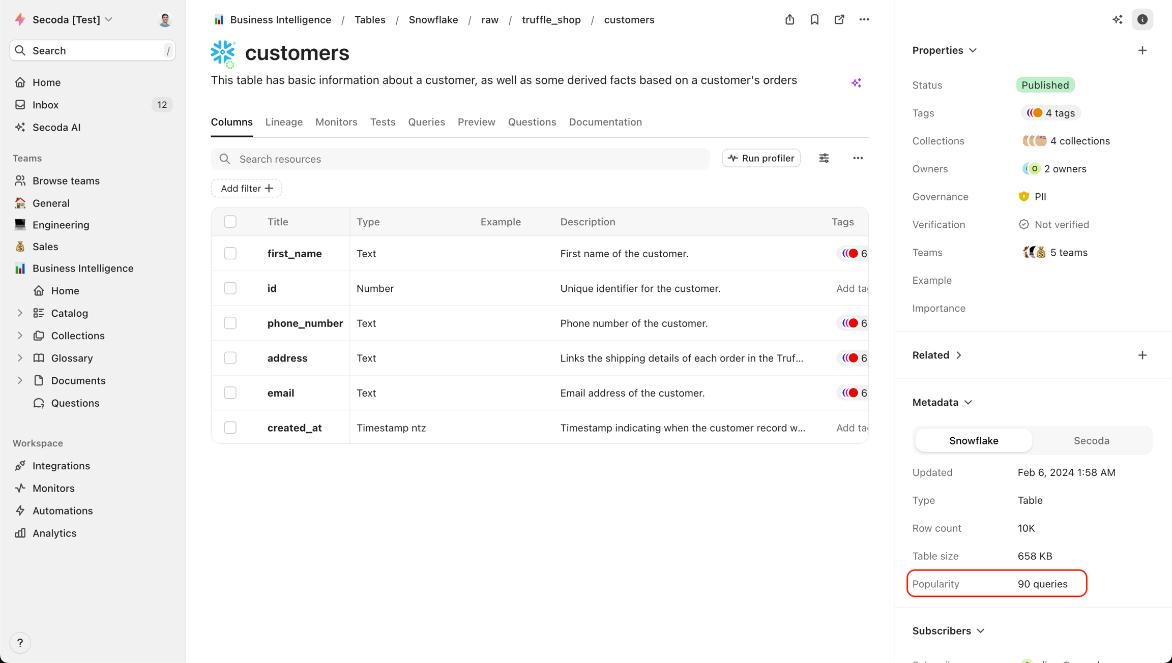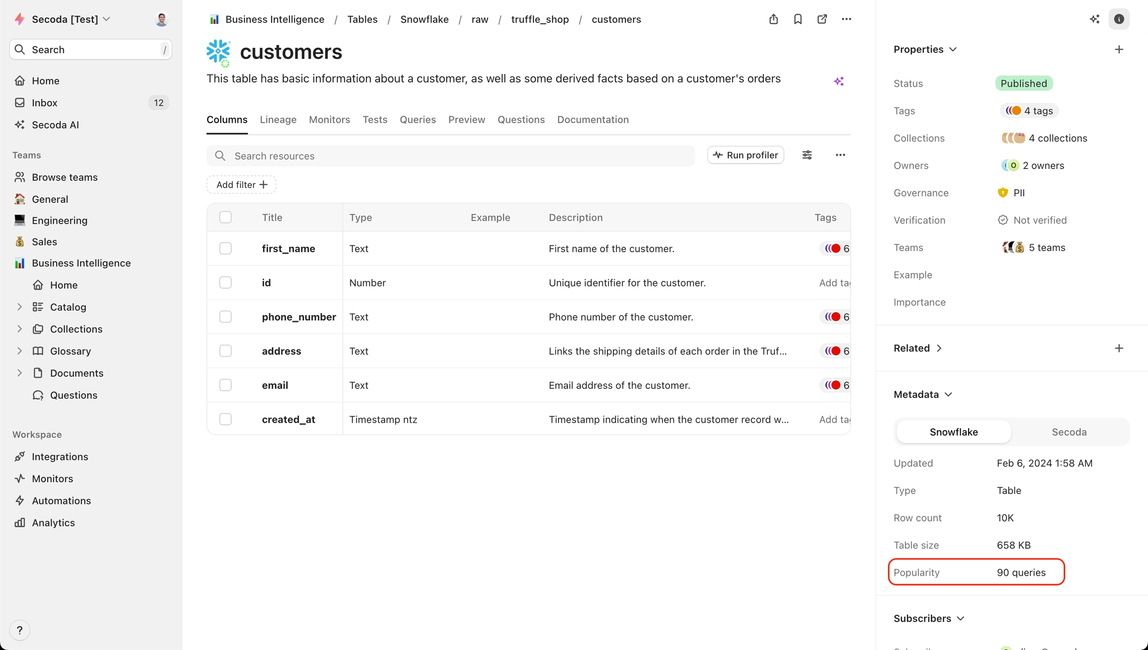Learn more about how to identify your most popular sources and how Secoda measures this metric