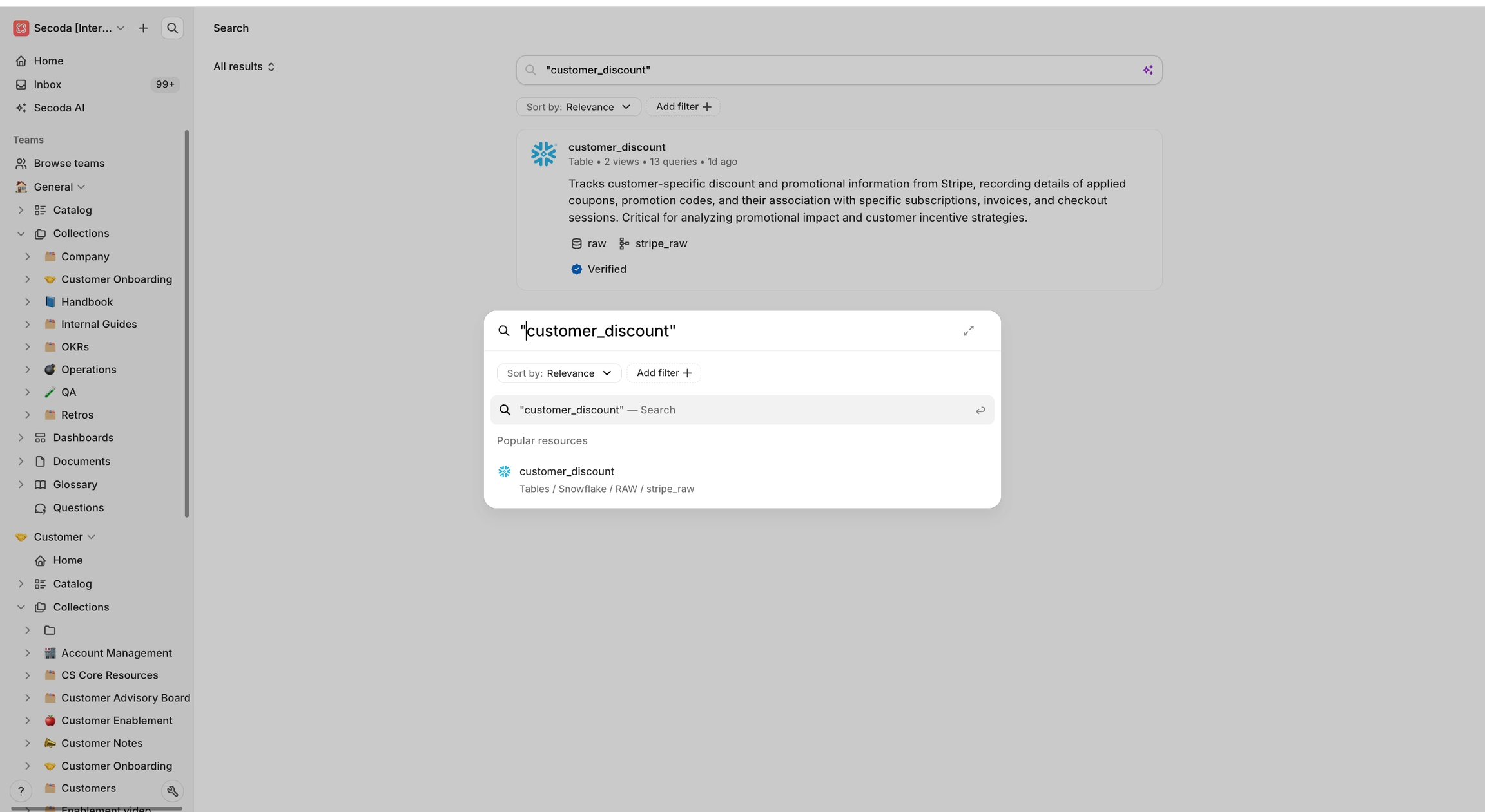 Search is super important to Secoda users and we are constantly improving the functionality to provide the best experience.