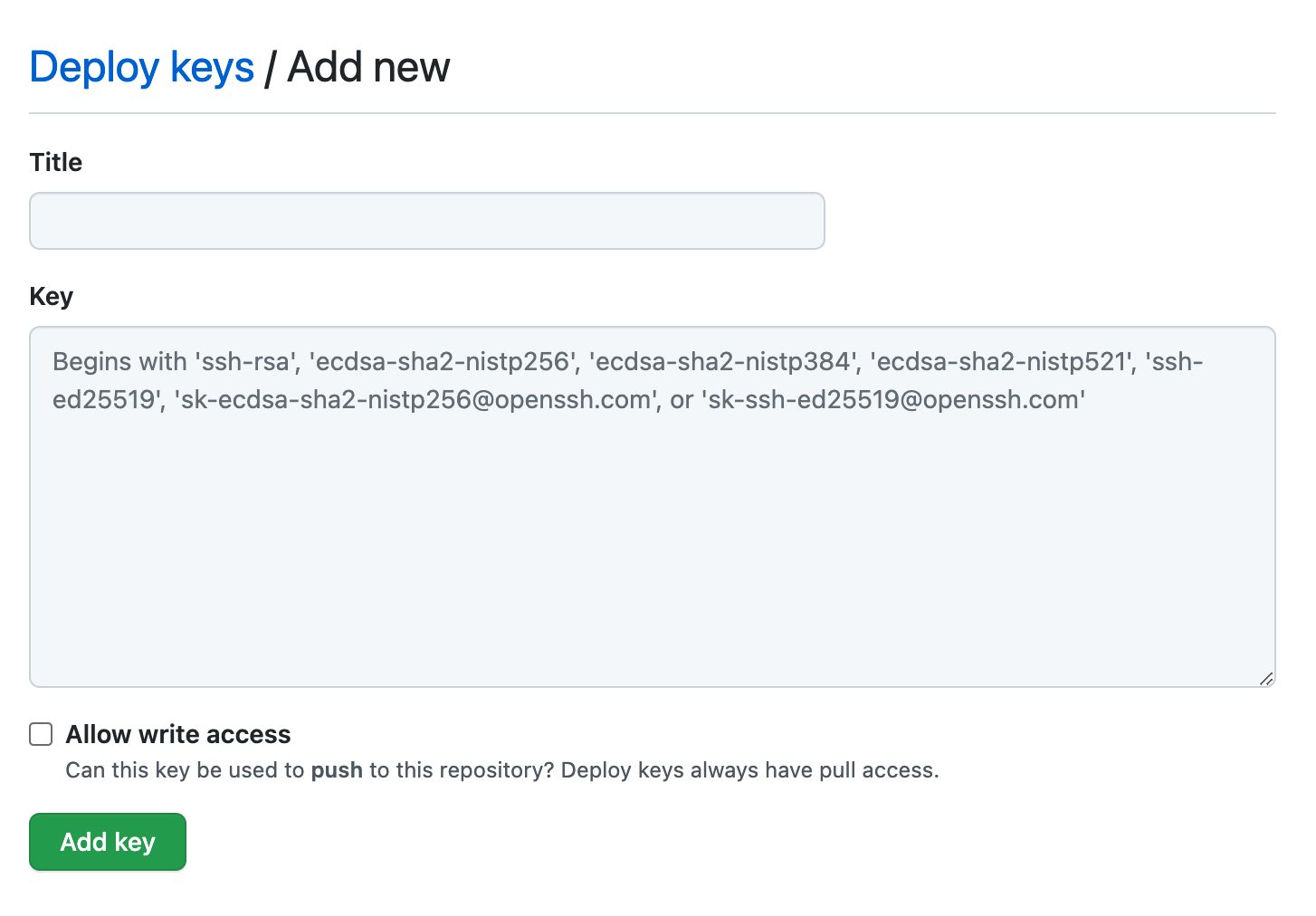 Click Add key. You DO NOT need to provide write access