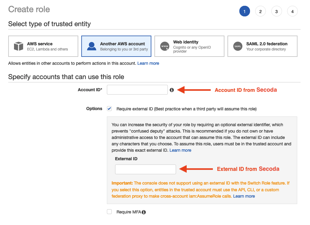Under Select type of trusted entity, choose Another AWS account.