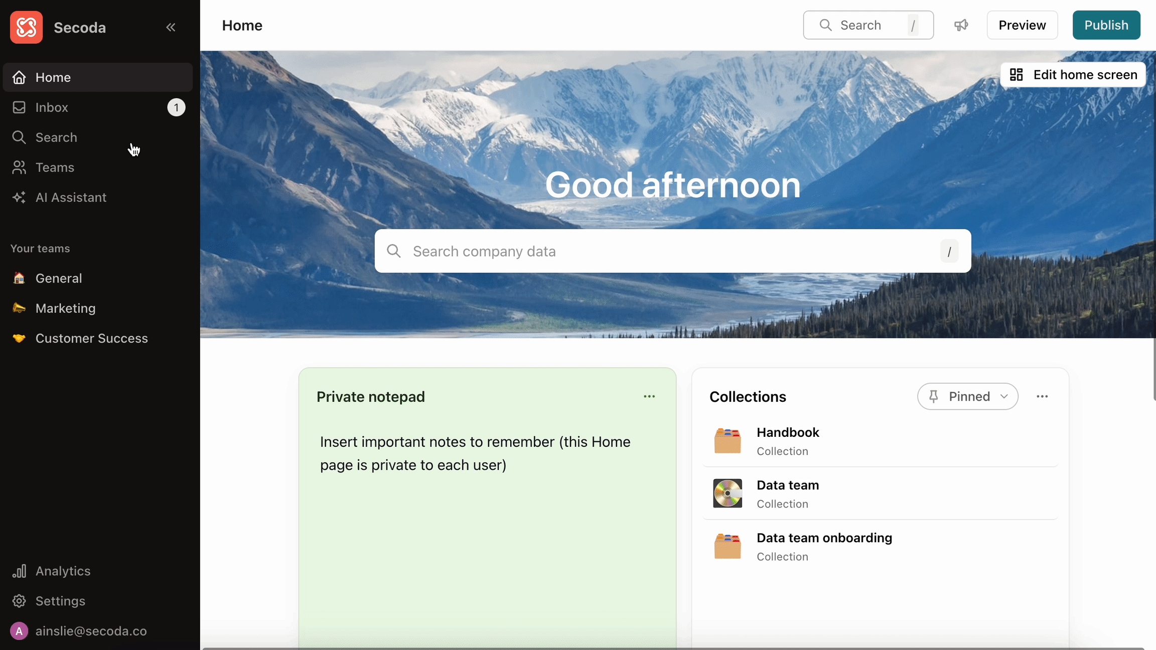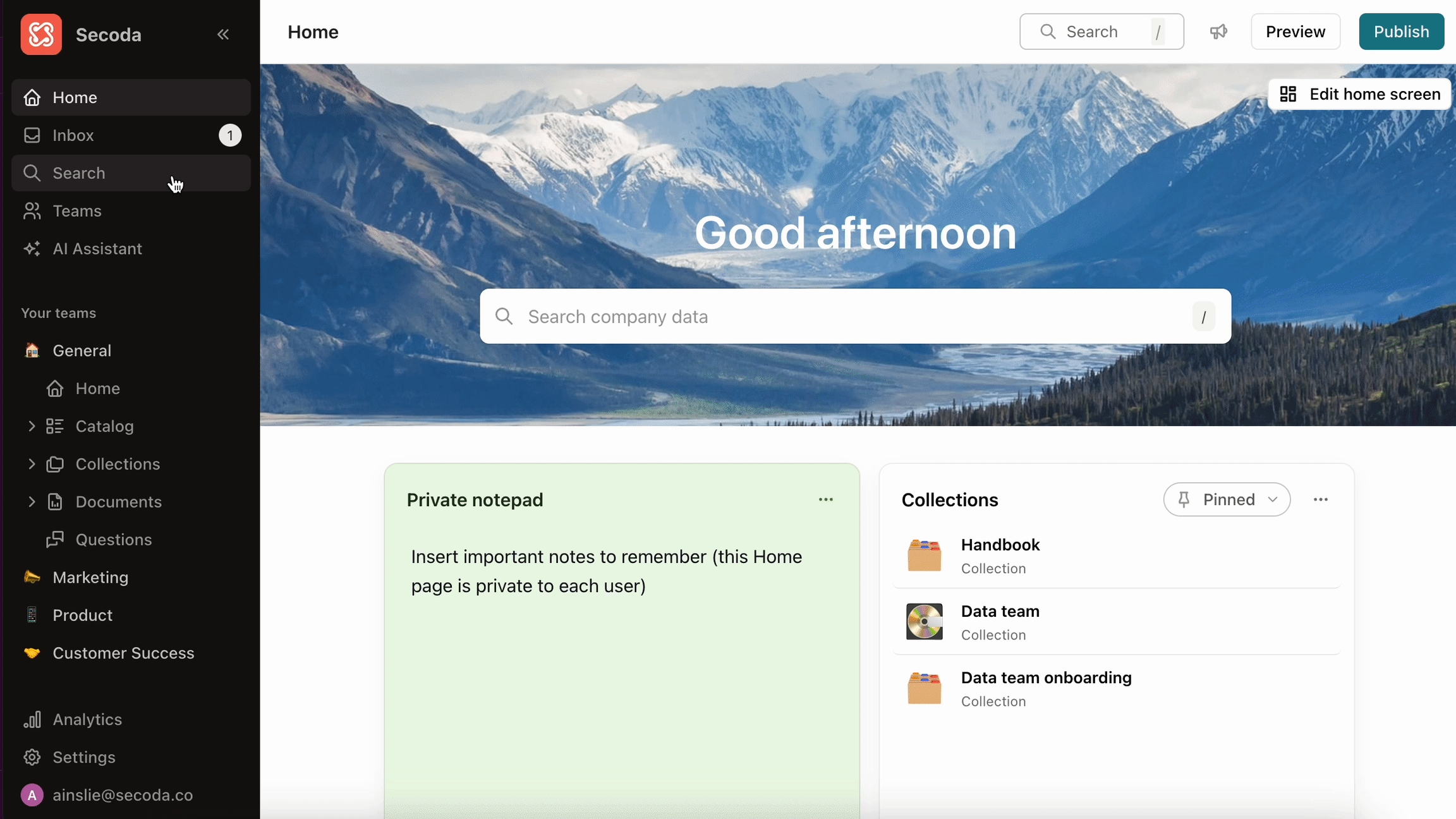 Share your screen showing your Secoda workspace.