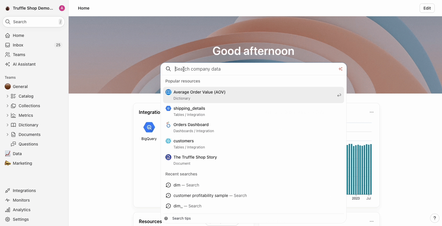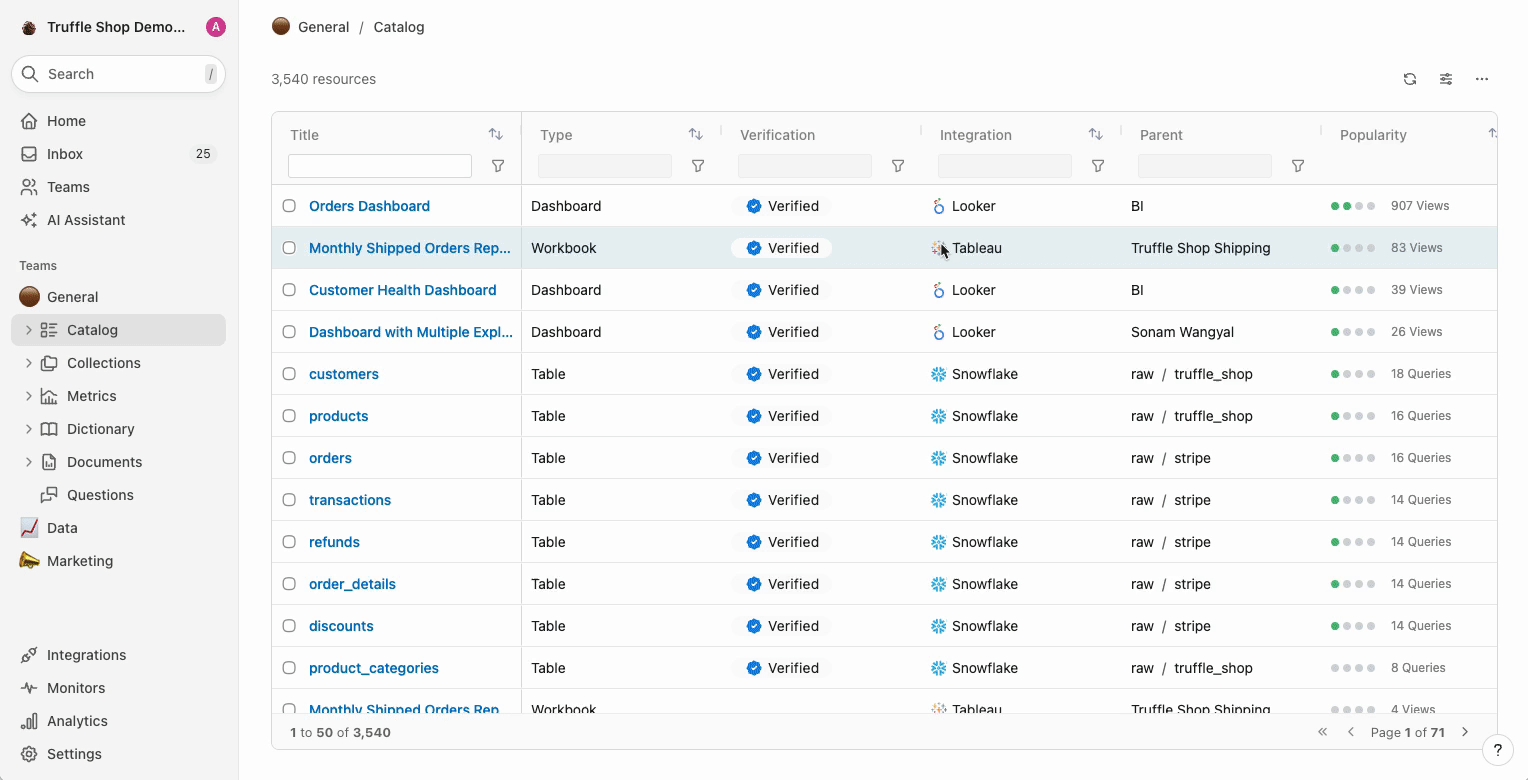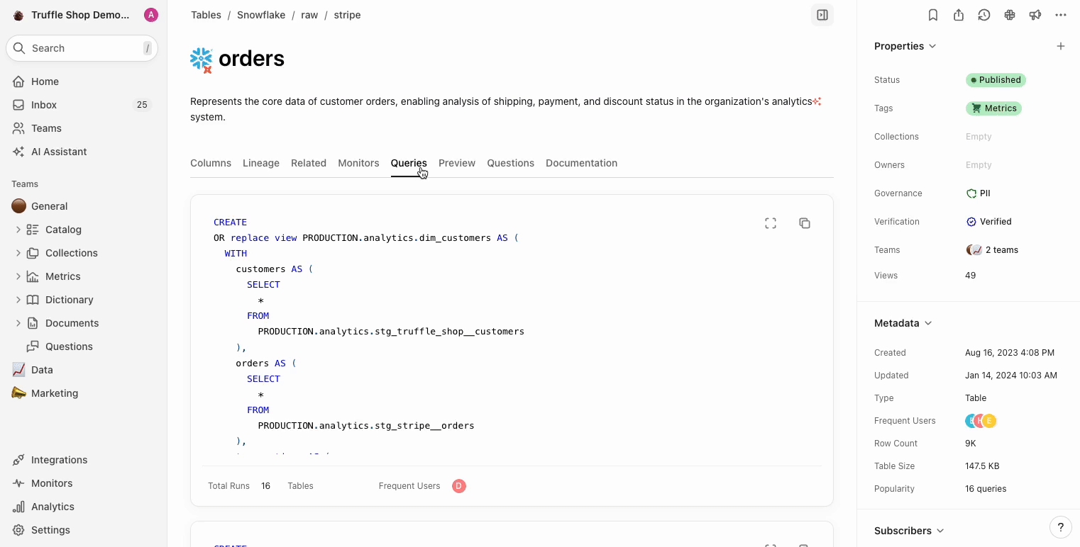 ask the AI Assistant about how two resources are related through lineage? Tag the resources in your question and let the AI do its magic.