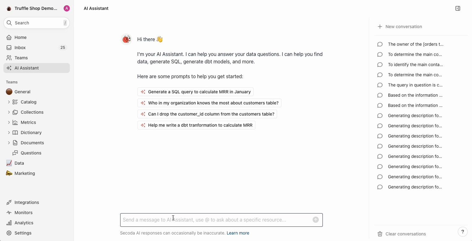 generate descriptions for resources with one click? Use Secoda's AI Description editor to save you time (hint: you can also do this in bulk!)