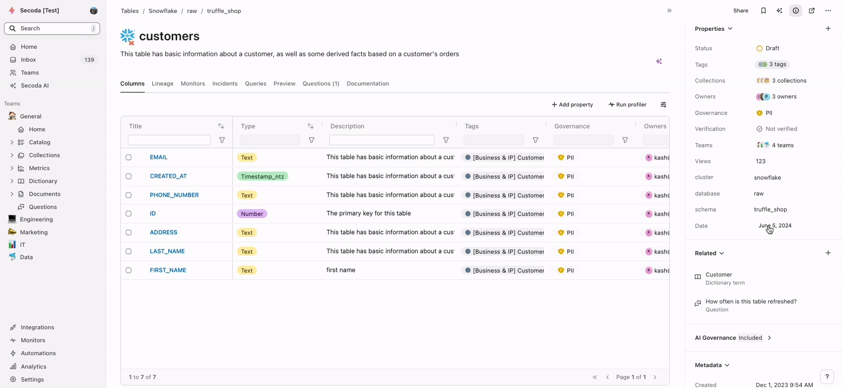 Custom properties allow you add additional context to resources in Secoda.